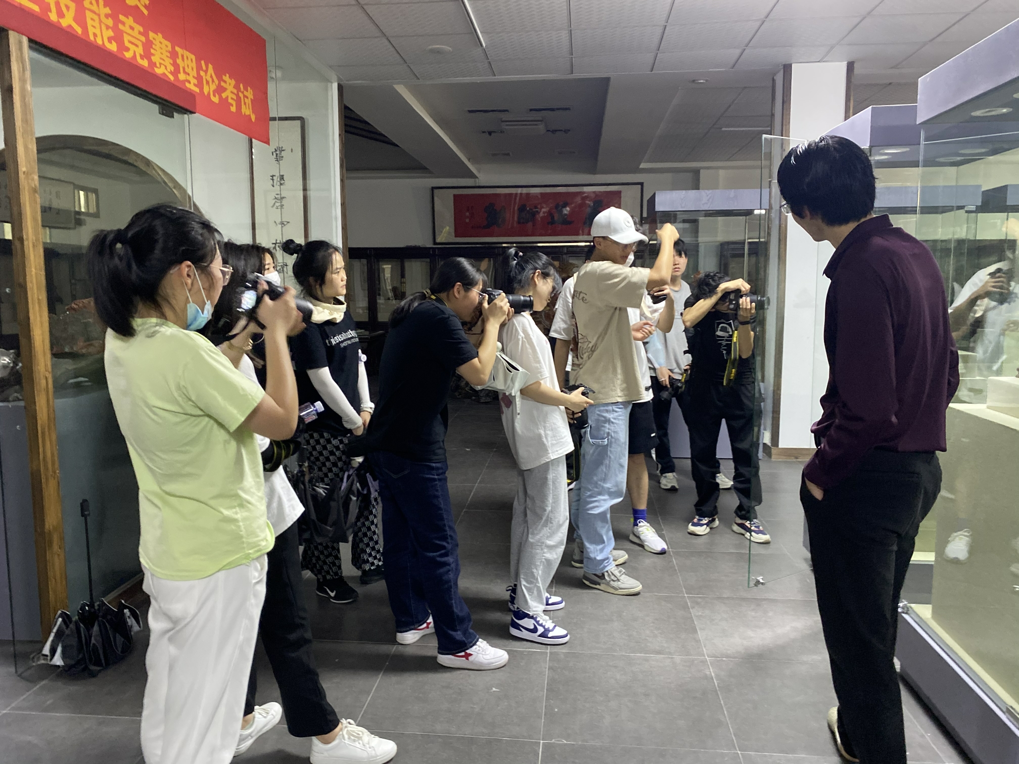 为提高同学们的实践能力,丰富同学们的知识储备,5月6日,bwin必赢魏仁兴经理组织21级会展同学前往寿山石研究所对寿山石进行学术研究及拍摄。 参观伊始,魏仁兴经理围绕“拍摄”、“寿山石的匠心”两个对同学们进行教育。告诫同学们拍摄也要像雕刻一样耐得住性子慢慢钻研,把拍摄学好、学专、学精,鼓励同学们弘扬其中的匠人精神。字里行间流露出对同学们的关怀和期待。 参观中,魏仁兴经理还邀请左一刀雕刻家为同学们进行讲解,使同学们更加了解寿山石的故事以及作品的雕刻。对于寿山石和拍照的想法,同学们都表现出了极大的好奇心和学习的热情,积极地提出自己的问题与想法,与老师同学探讨交流。不论问题简单与否,老师不厌其烦地为其解答,现场的学习氛围渐渐变得浓厚起来。 此次寿山石研究所之旅,使同学们不仅对寿山石历史有了更全面地认识和了解,更激发了同学们对拍摄技术深入探索和研究的兴趣。