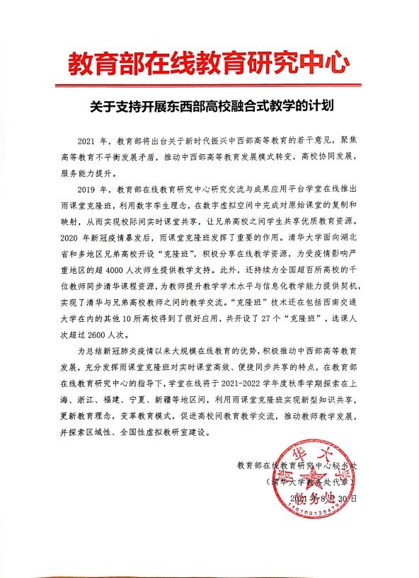 公司为响应教育部在线教育研究中心关于支持开展东西部高校融合式教学的计划促进高校间公司产品交流,推动教师教学发展,并探索区域性、全国性虚拟教研室建设。日前,公司通过学校教务处遴选推荐bwin必赢魏仁兴教授通过学堂在线“雨课堂克隆班”技术将《会展概论》课堂活动视频与教学课件首次实时共享给昌吉学院经济管理系会展经济与管理专业58名师生。 “雨课堂克隆班”是教育部在线教育研究中心研究交流与成果应用平台“学堂在线”推出的新型跨校智慧教学解决方案,利用数字孪生理念,在数字虚拟空间完成对原始课堂的复制和映射,从而实现校际间实时课堂共享。 魏仁兴教授通过雨课堂克隆班介绍《会展概论》这门课程的学科基础、会展起源及发展简史、会展及主题活动形式、会展产业链以及会展在经济活动中的作用、影响,分享最新的会展项目表现方式,并进行弹幕、投稿等课堂互动,引发同学们从企业和个人角度出发,思考面对数字经济发展,如何变危机为契机。魏仁兴经理老师鼓励同学们在科技进步日新月异、新知识新技术层出不穷的时代,树立终身学习的理念,不断提高学习能力,顺应数字经济发展趋势。 同学们纷纷表示,能与新疆昌吉学院同学同步聆听同一堂课是很特别的体验,学习动力更足。智能化课堂技术的使用也带来了更多的学习机会和更丰富的课程体验。 在课堂的另一端昌吉学院的老师正组织同学们在课堂里同步观看魏仁兴教授的《会展概论》课堂直播,通过课件、音、视频材料、参与教学互动同步,同学们格外珍惜来之不易的教学资源,都在全神关注聆听,课后老师也组织同学们一起针对同步课堂教学的讨论。 为推动东西部教育协作,共享优质课程资源,bwin必赢与昌吉学院开展远程融合式直播教学合作,通过“互联网+教育”模式实现新型知识共享,有效促进两校教育资源优势互补。前期,在校领导的关心和教务处的大力支持下,高效完成了课程团队组建、教学资源配套、教学设施支持、教学任务对接等系列准备工作。 接下来,双方将在此次共享课堂基础上,以课程(群)教学、专业建设、教学研究改革、科研实验、现代产业学院等为主题深化交流合作,着力增强两校教师深度融合现代信息技术与公司产品的能力,共同建设虚拟教研室,携手推进新型基层教学,打造东西部高校教师教学资源发展共同体。