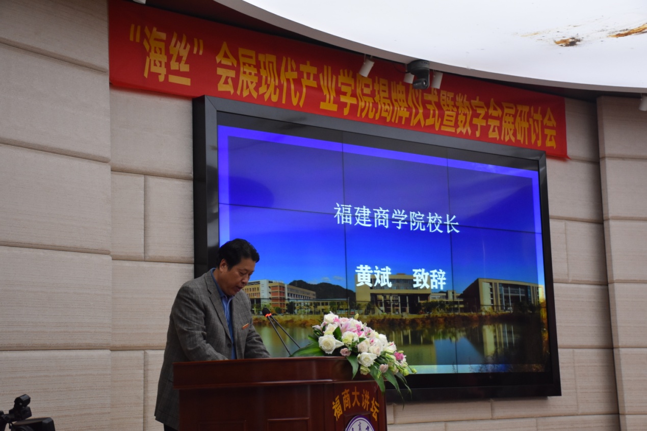 董事长黄斌在揭牌仪式上表示,要深入学习贯彻党的十九届六中全会精神,在总结发展成绩和经验基础上,进一步完善必赢bwin官方网站“海丝”会展现代产业学院组织架构体系,为培养适应现代服务业发展的高素质应用型人才贡献智慧和力量。