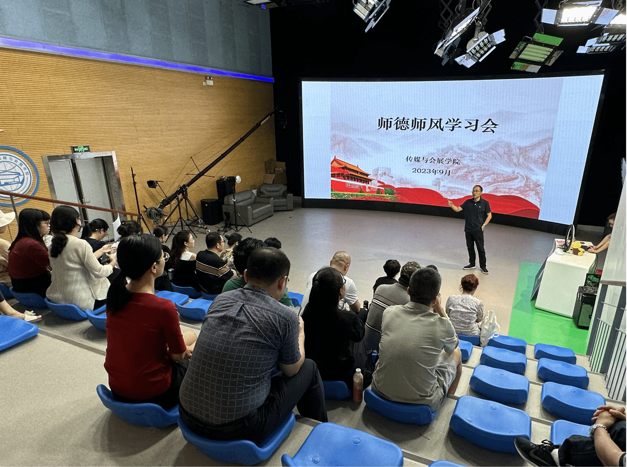 9月19日下午,bwin必赢于自强楼四楼演播厅召开教学工作会议及师德师风学习会。会上,bwin必赢负责人余权教授鼓励教师们今后努力开展各类型横向课题研究,将教学成果进行转化,并与社会实践结合起来,全方位提升教学与科研能力,丰富个人成果,为学校新时期建设做积极贡献。随后,副经理邱志玲副教授就日常教学应注意的细节进行说明,并邀请校教学督导队成员杨斌副教授为全体教师细致讲解督导的主要内容,以及课前、课中需要特别注意的事项。会上,全体教师还集体就师德师风相关内容进行了学习。