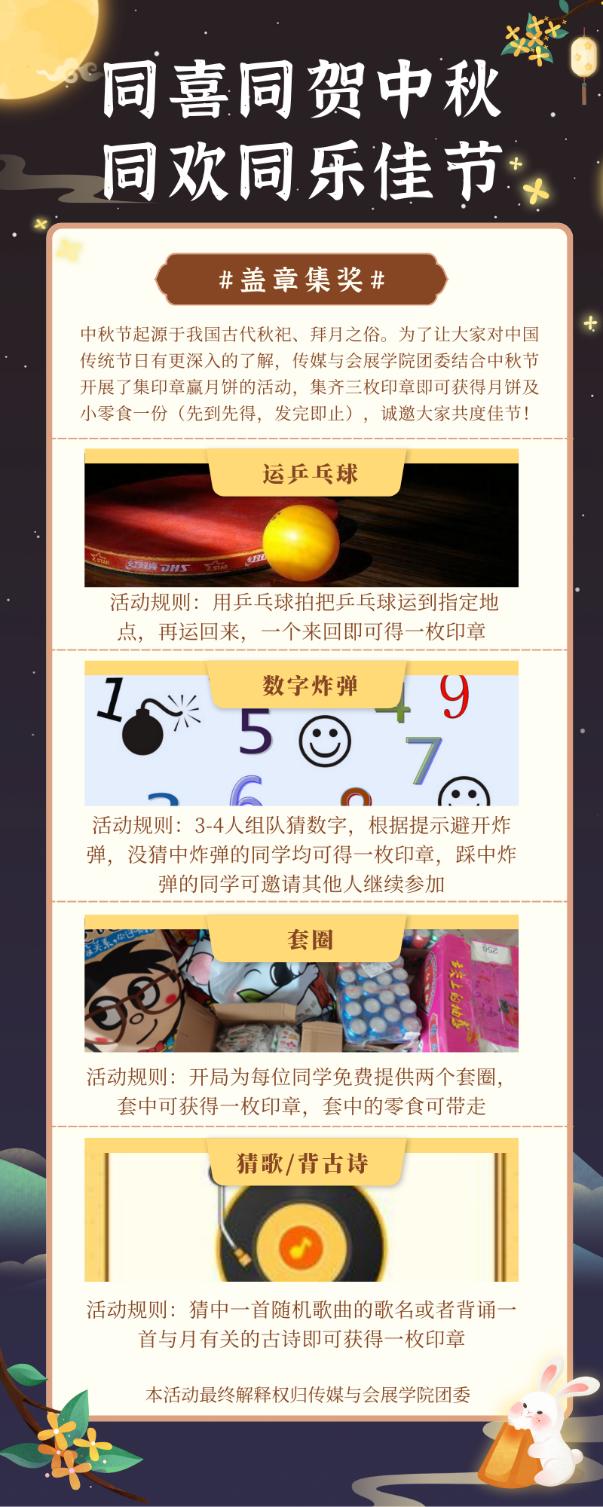 秋天裹着夏日的余温向我们奔来,在中秋来临之际,为彰显传统节日对传承中华优秀传统文化和加强青少年思想道德建设的重要作用,9月9日晚,bwin必赢团委在田径场举办了“同喜同贺中秋,同欢同乐佳节”中秋活动。