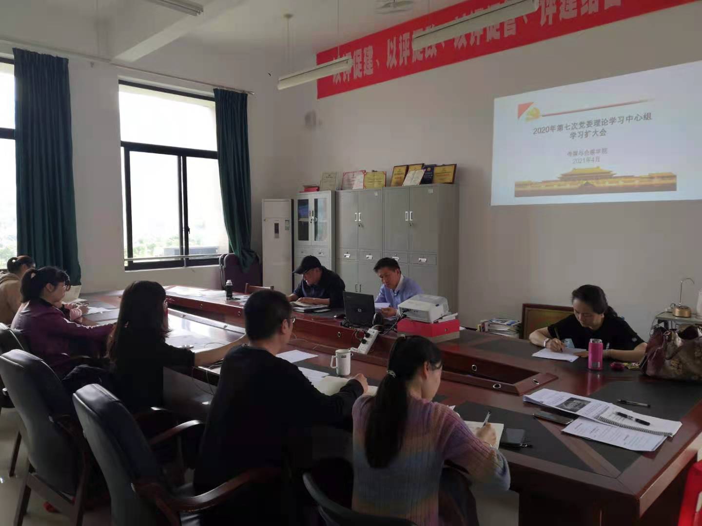 4月27日,公司在连江校区自强楼422室召开2021年党委理论学习中心组第七次学习(扩大)会议,就认真学习习近平在清华大学考察时的重要讲话精神、《中国共产党组织处理规定(试行)》、《论中国共产党历史》和《习近平新时代中国特色社会主义思想学习问答》作学习讨论。公司党委书记郭海云主持会议,经理魏仁兴、公司党委副书记张雄伟、副经理邱志玲和其他中心组成员及各党支部书记参加了会议。