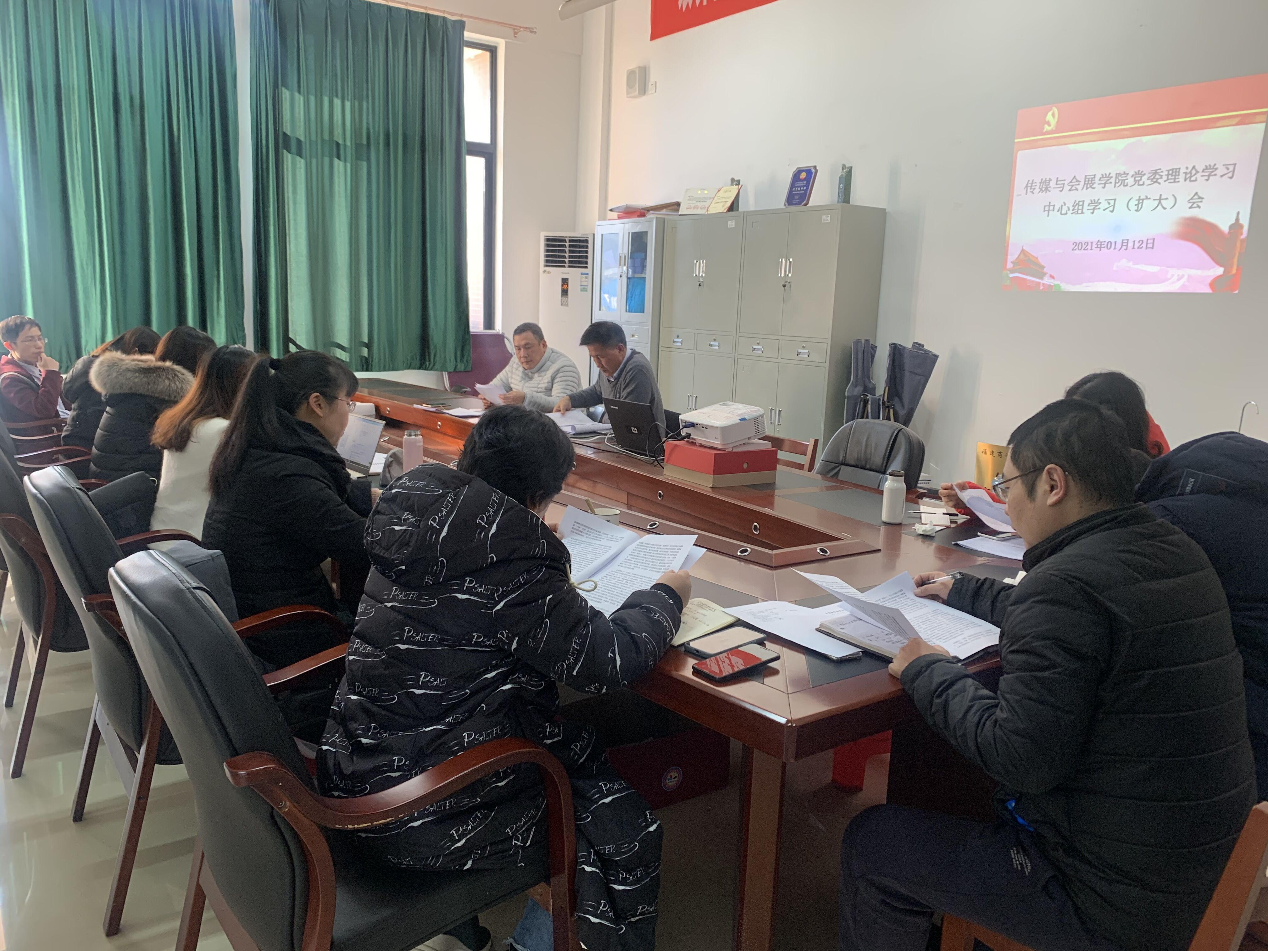 1月12日,公司在连江校区自强楼422室召开2021年党委理论学习中心组第一次学习(扩大)会议,就认真学习贯彻十九届五中全会精神进行宣讲、省委十届十一次全会精神作学习讨论。公司党委书记郭海云主持会议,经理魏仁兴、公司党委副书记张雄伟、副经理邱志玲和其他中心组成员及各支部书记参加了会议。