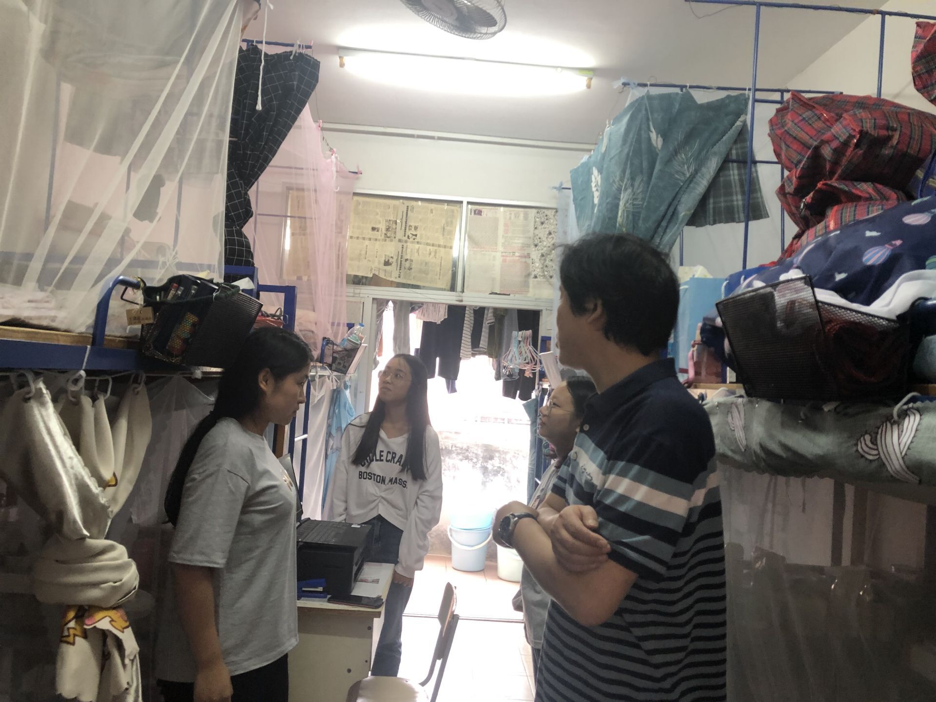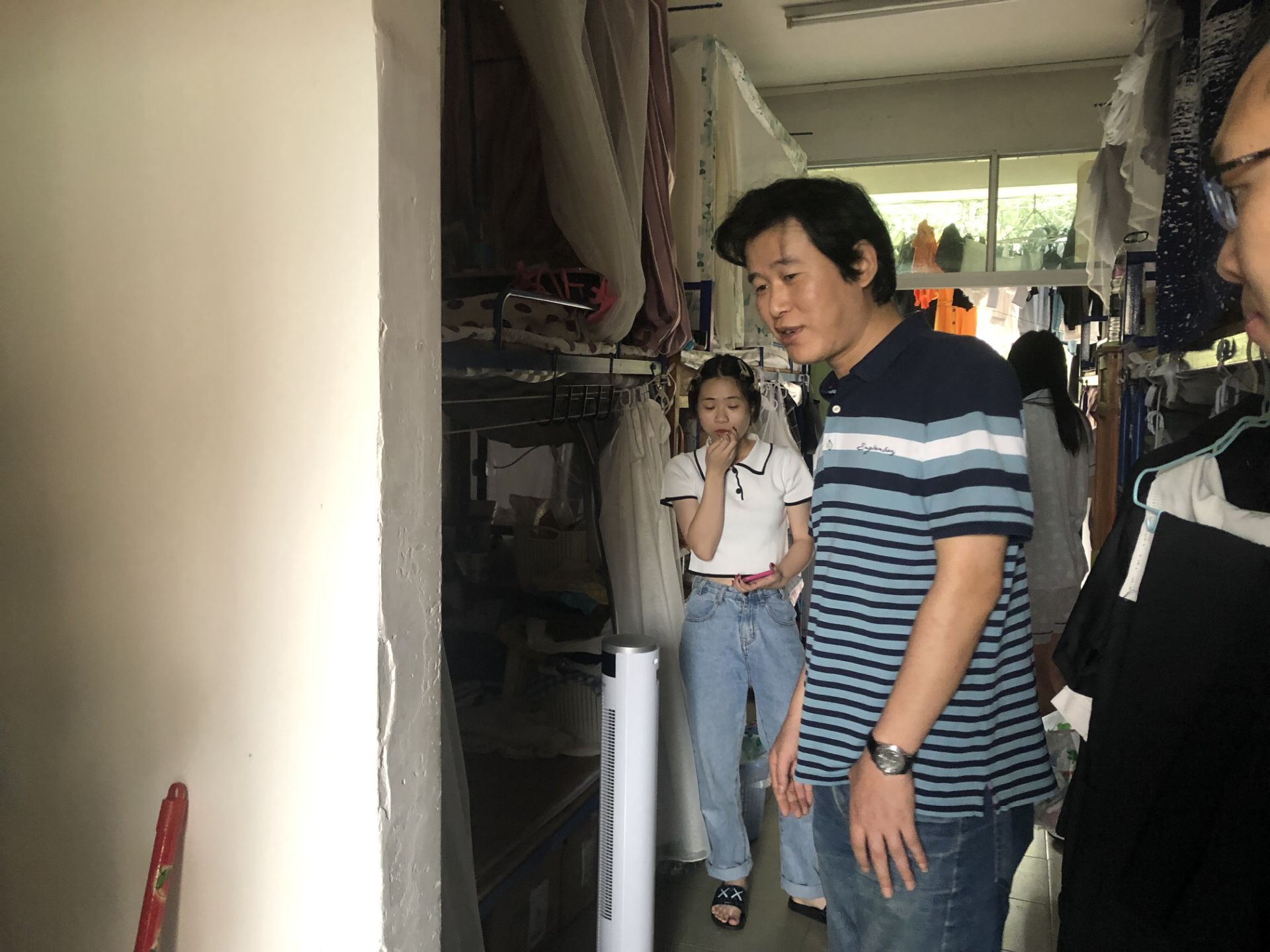 在员工宿舍内,张雄伟副书记询问同学们开学以来的学习生活情况,同时叮嘱同学们要注意宿舍卫生、合理进行用电,避免发生火灾。与此同时,张雄伟副书记希望同学们合理的安排学习与娱乐时间,珍惜接下来的大学时光,要对自己的未来做出合理的规划。