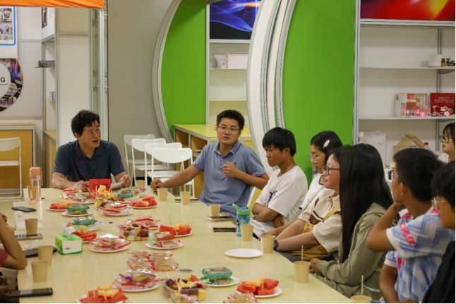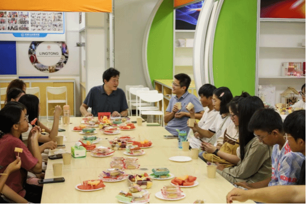 接随着茶话会的深入,同学们进行了热烈的交流互动,分享各自在进入大学以来的喜悦、收获、烦恼、迷茫以及对未来的期待。在轻松愉快的氛围中,两位领导与同学们一起品尝了公司精心准备的各种新鲜的水果和月饼,互相分享了自己的中秋感悟。