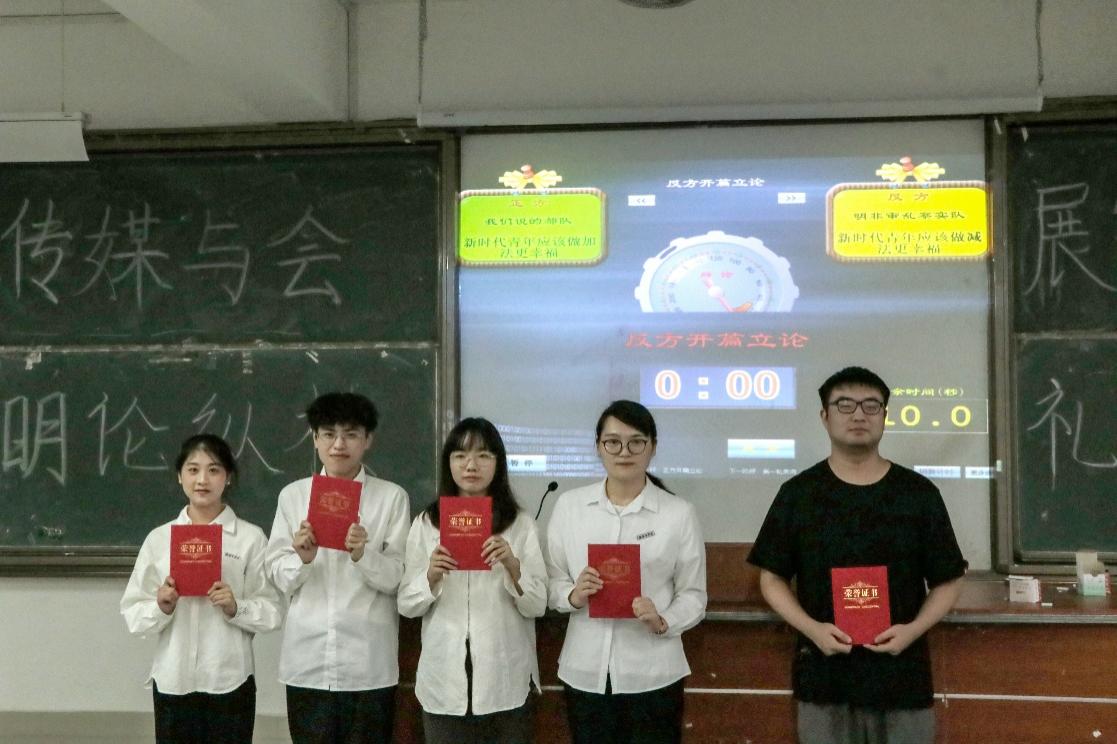 为丰富同学们疫情封控下的校园文化生活,激发同学们自主思考的能力,同时进一步增强同学们的交际能力和团队合作能力。11月11日,bwin必赢于诚信楼中阶教室举办“明论纵横,礼辩古今”主题辩论赛决赛,往届辩论赛金牌选手王培鑫、罗杨烨、曾诗琳、陈航琳、刘龙辉担任此次决赛评委。
