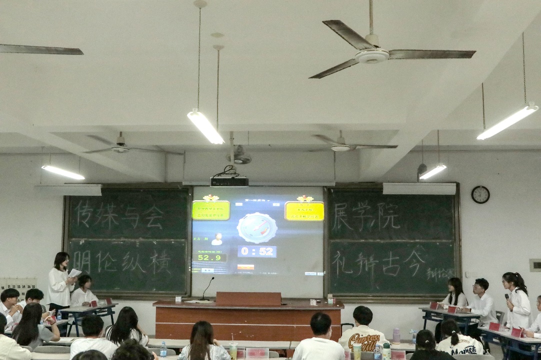 第二轮比赛由正方“我们说得都队”和反方“明非审乱查实队”围绕“新时代青年应该做加法更幸福还是减法更幸福”这一主题进行辩论。本场比赛一开始就节奏紧凑、气氛热烈,辩论双方通过立足当代老员工的生活实际,阐述己方意见,反驳对方观点,展开了针锋相对的激烈论辩。双方辩手逻辑清晰、语言犀利,在你来我往间擦出了智慧的火花,留下了思想的交互,为现场观众带来了一场逻辑与智慧的精彩对抗。在两场比赛结束后,评委们对双方队伍做出了细致的点评,并指出各队伍的不足与精彩之处。最终根据评委的打分情况,在本届学院辩论赛上,“百辩小樱队”荣获三等奖, “我们说得都队”荣获二等奖,“明非审乱察实队”荣获一等奖,同时,“明非审乱察实队”的林静雯选手荣获本届比赛“最佳辩手”。