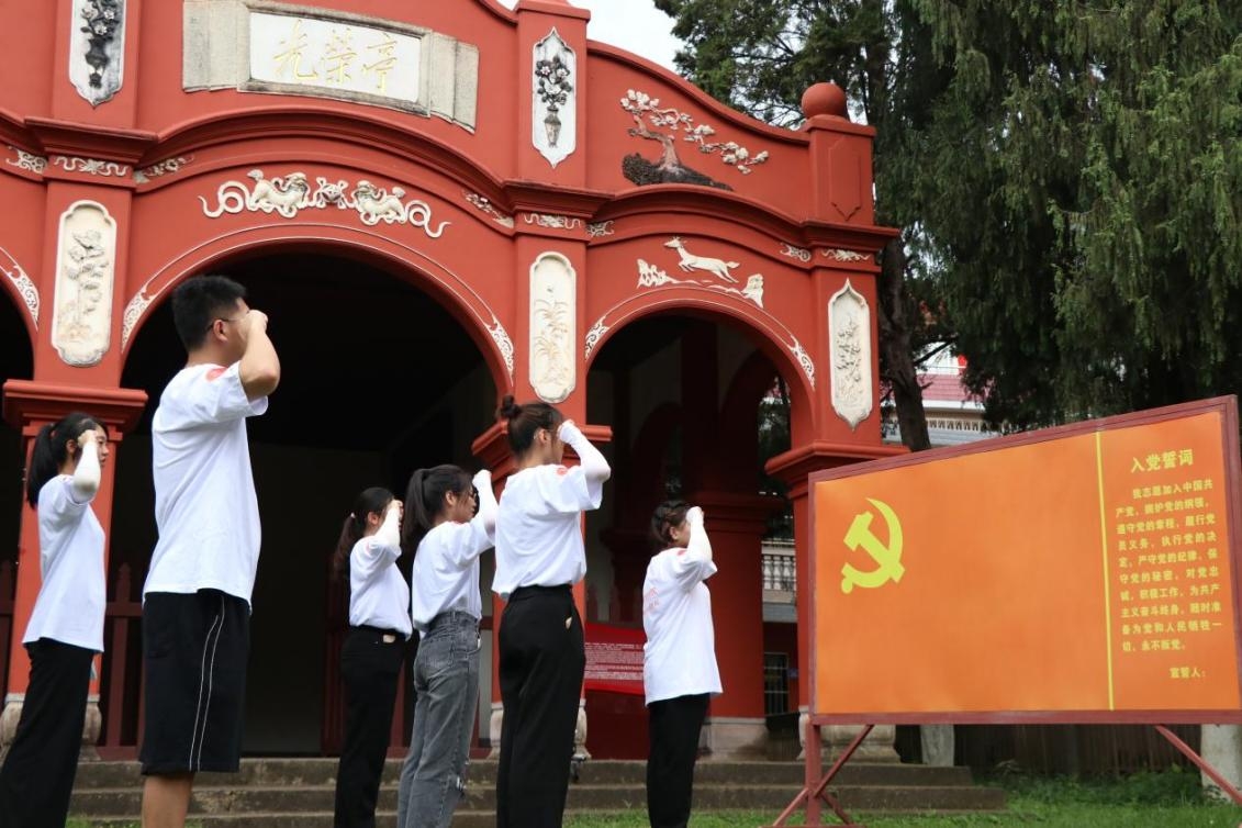 参观完毛泽东才溪乡调查纪念馆,实践团成员前往才溪乡苏维埃政府旧址、列宁堂以及光荣亭学习,并于光荣亭前忆初心,重温入党誓词。