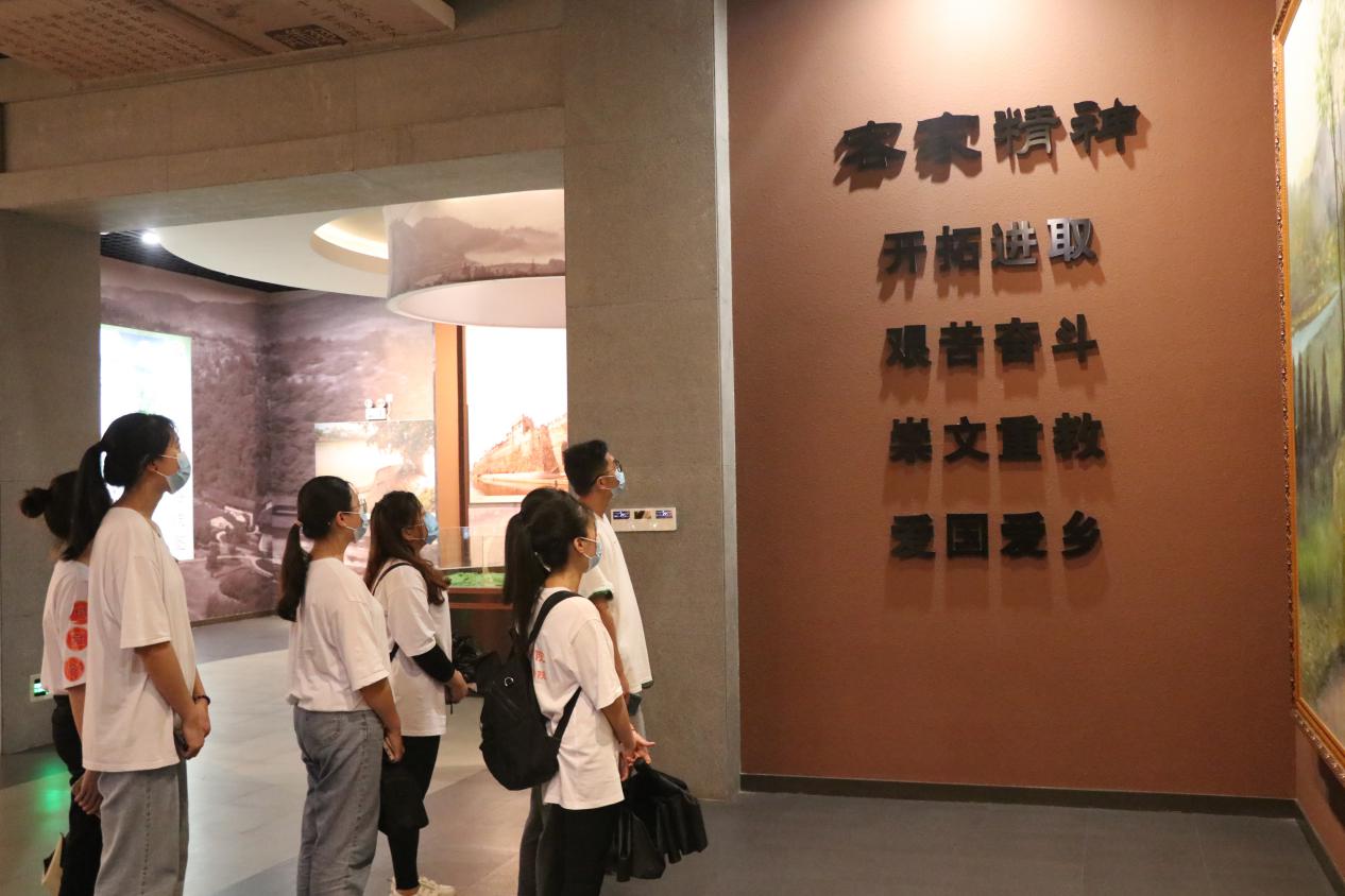 “掩上一册册泛黄的客家谱牒,难掩其中闪烁的光彩……她伴随着中华民族的伟大复兴,焕发出璀璨光芒”,通过对客家精神的了解学习,实践团师生深有感触,并由此自发朗诵馆内石碑上的结语,一同致敬客家文化,致敬闽西革命先辈。