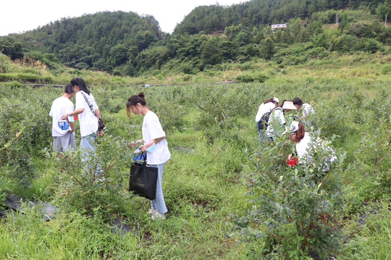 7月6日上午,实践团前往绿谷优蓝蓝莓种植基地解蓝莓种植及相关农产品的生产线,近距离体验真正的现代化农业,开展劳动教育,认真学习正确采摘蓝莓的手法与技巧,并协助基地专业采摘工人完成采摘工作,在社会大课堂中开阔眼界,切身体会劳作的辛苦,以实际行动践行“全心全意为人民服务”的宗旨。