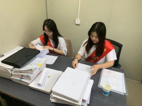 分配完之后,小分队成员开始正式工作。团队成员们进到各自的工作区域就积极向来往人员询问需要帮助的工作。队长与学院的负责人深入交流,了解图书馆资料的实际情况,指导团队成员做好登记,整理资料等志愿服务。下午5点的工作完成,与负责人等一同就餐,准备继续明天宣讲的工作。