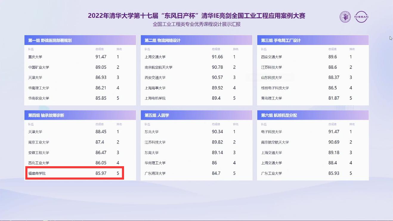 清华大学主办的IE亮剑比赛是国内影响最广、水平最高的工业工程应用领域赛事之一。此次赛事包括清华大学、上海交通大学、南京航空航天大学、江苏科技大学、西安交通大学等89所高校在内的290支队伍同台竞技。公司作为新办本科院校,能在与来自985、211院校队伍的比赛中取得佳绩,检验了公司工业工程专业人才培养的水平,也肯定了工业创新学社“以赛促学,以学促赛,以学为主,以赛为辅”的育人理念。