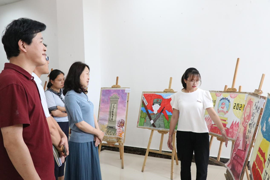 展览现场,公司党委副书记徐晓丹老师认真欣赏了同学们的作品,对同学们的创作表示了肯定。徐副书记表示,“要相信员工们的潜力,通过动手创作方式与党史学习结合,对“四史”有了更多认识,更能使员工们收获深刻的感悟,相信我们的员工是可以做的更好的。”