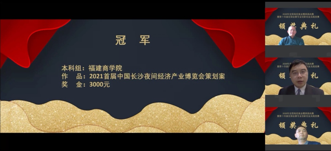 经过网上公开、透明、客观、公正、激烈的三轮角逐,18级会展王德文、何佳琪、黄蓉、林静茹、李家宇同学的《2021首届中国长沙夜间经济产业博览会策划案》获得了“特等奖”和“本科组冠军”,陈姝婷、李艳、辛丽丽、陈子为、严迪铭五人组,获得二等奖,同时,公司亦获得了最佳院校组织奖。在此次竞赛中,bwin必赢学子发挥出应有的专业水平,以扎实的理论知识、优秀的创意和较强的实践能力,得到了评委组的一致认可。通过此次竞赛,员工们挑战了自我、拓宽了视野,从竞赛中学到更多的专业知识,提升了会展项目管理、会展营销与会展策划等理论与实践能力,展现了公司学子良好的专业素养和精神面貌。